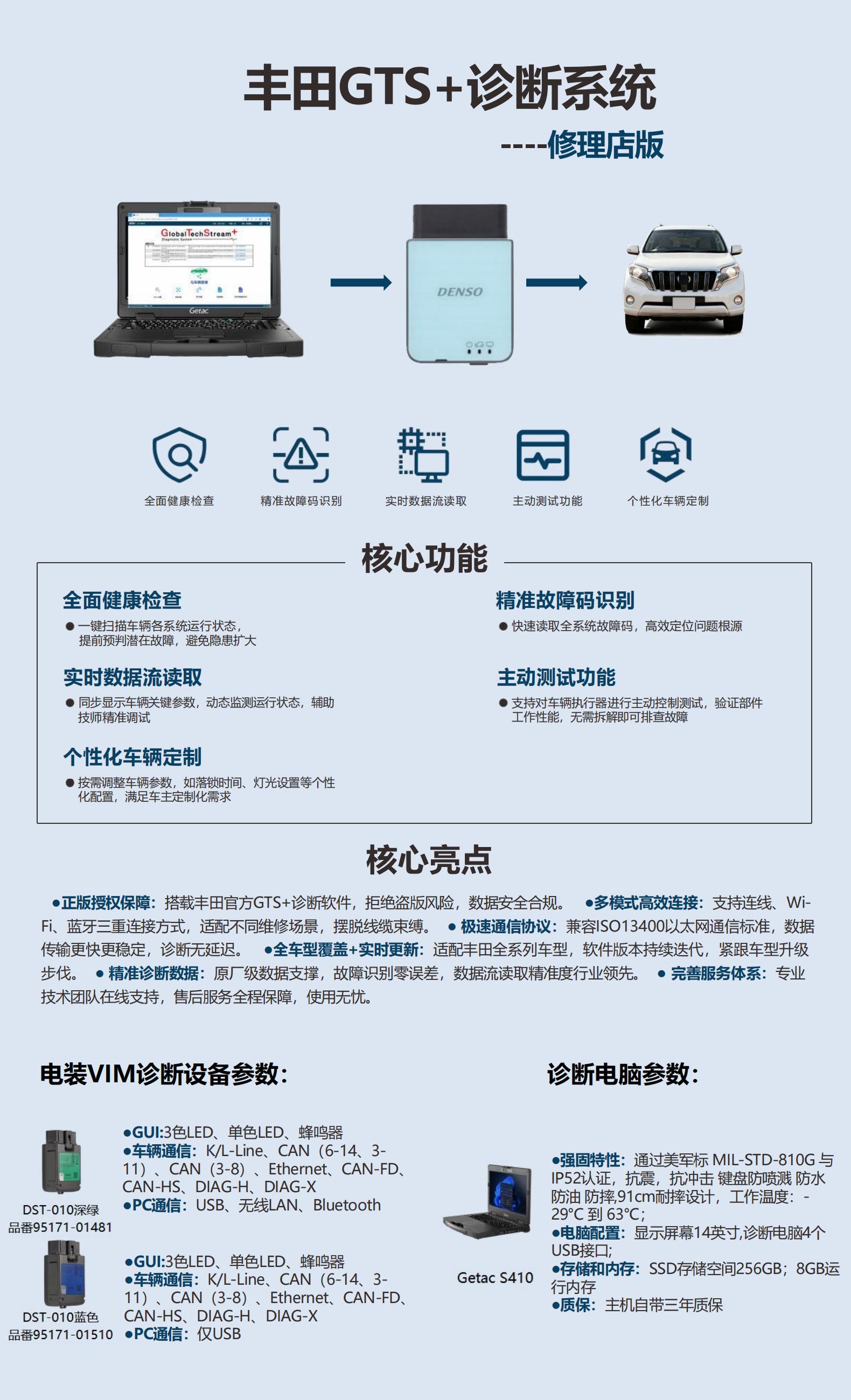 ●正版授权保障:搭载丰田官方GTS+诊断软件,拒绝盗版风险,数据安全合规。